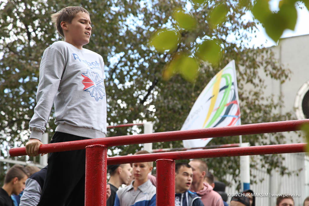 Отжимания на брусьях — уже второй спортивный рекорд, который ставит «Город чемпионов», в августе горожане подтянулись 2018 раз. На этот раз людей, желающих принять участие в установке рекорда, было гораздо больше.