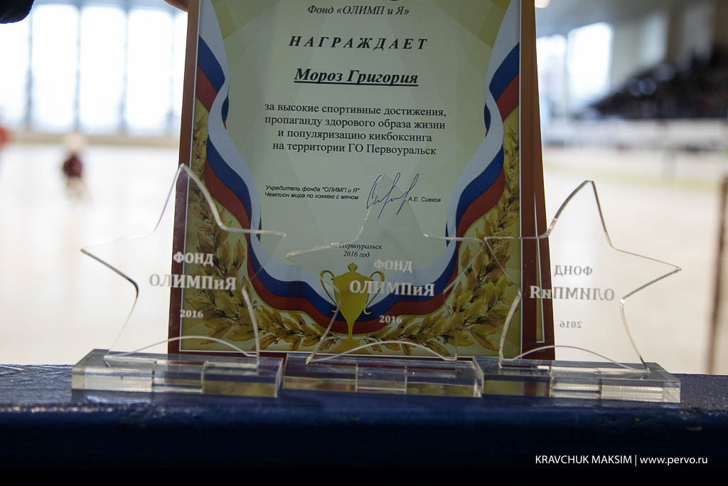 За фигуристами премии «Олимп и я» были вручены подопечным тренера Михаила Плюхина, кикбоксерам Григорию Морозу, Георгию Житнюку, Андрею Тумакову и Диане Хузиной.