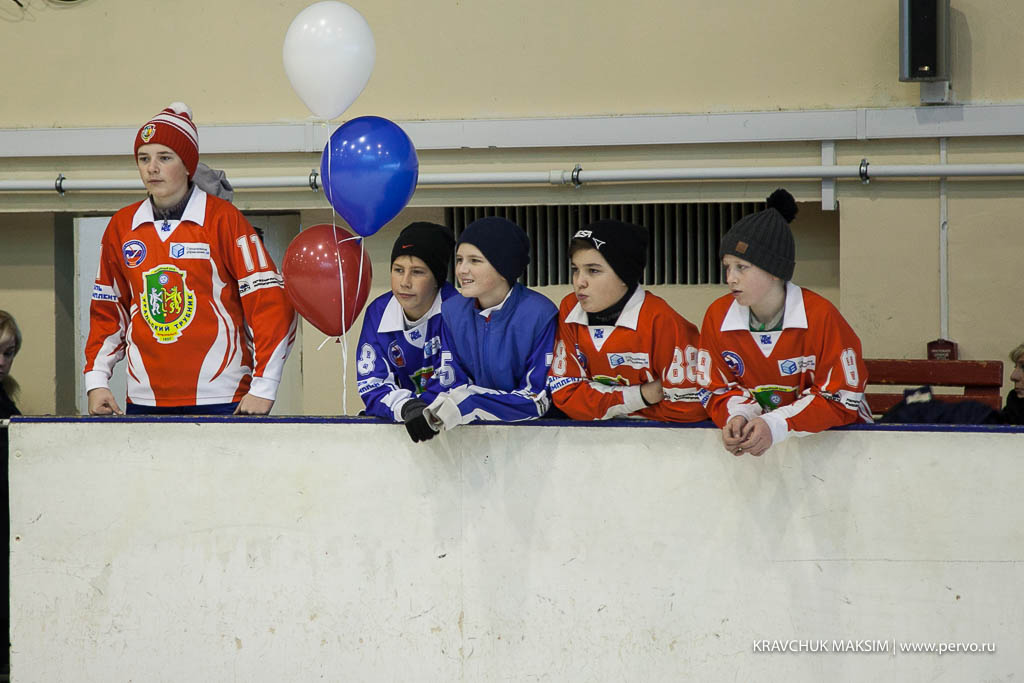 Команда администрации городского округа Первоуральск в синей форме «Уральского трубника» сыграла со сборной областных чиновников в хоккей с мячом.