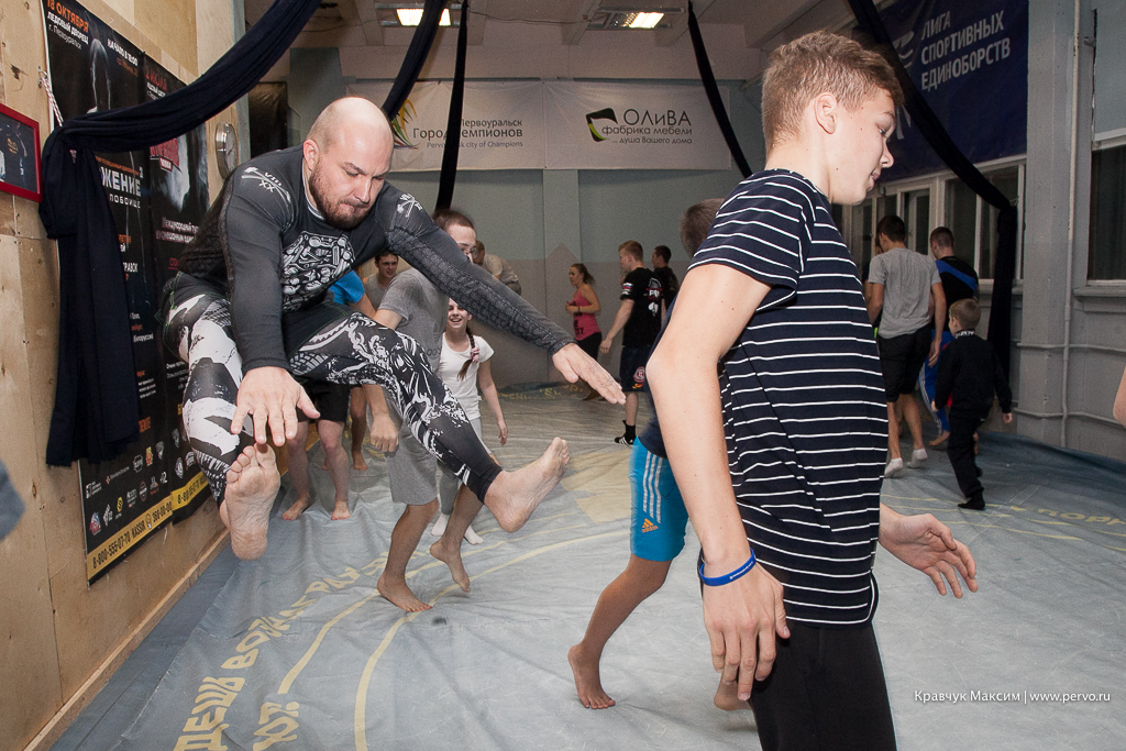 В течение трех дней он уже провел три мастер-класса, встретился с жителями Первоуральска, а в выходные его ждет еще одна показательная тренировка.