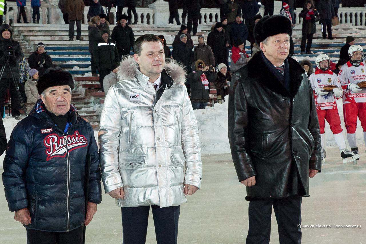 Состоялись проводы из большого хоккея отдавшего «Трубнику» два десятка лет Павла Чучалина. А право ввести мяч в игру предоставили лучшему хоккеисту ХХ века легендарному Николаю Александровичу Дуракову.