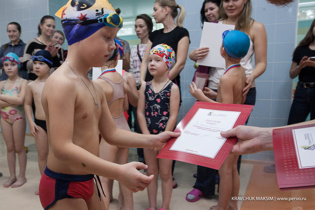 «Мне в спорте больше всего нравится получить медали», — признался после заплыва юный спортсмен Лев Васильев.