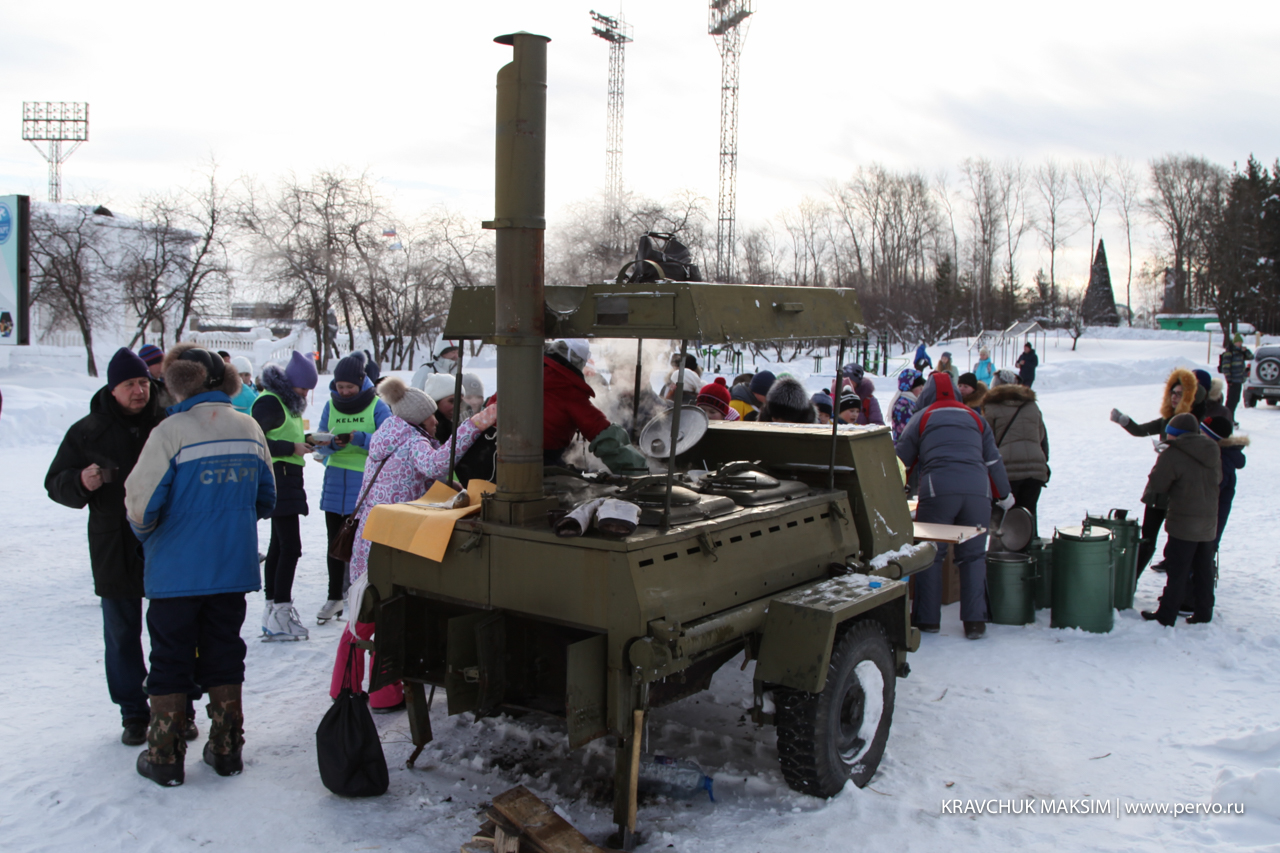 После проведения соревнований всех участников ждала полевая кухня с гречневой кашей и сладким чаем!