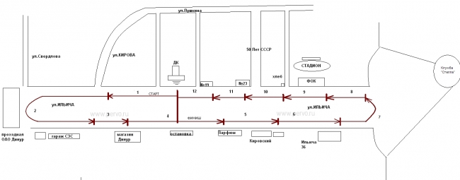 Маршрут эстафеты разделен на 12 этапов и проходит по улице Ильича: