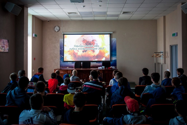 После посещения раздевалки ребята прошли на VIP-трибуны и в конференц-зал, где их ждала викторина, посвященная главному футбольному событию 2017 года – Кубке Конфедераций FIFA. Затем первоуральские спортсмены сами приняли участие в шуточном матче на главном поле арены.