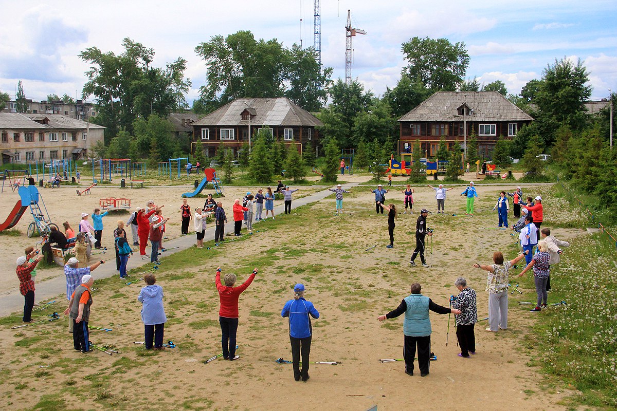 12 часов дня, воскресенье. Жители Талицы на протяжении вот уже нескольких месяцев собираются в центральном дворе микрорайона — между домами улиц Сакко и Ванцетти и Цветочная — с некоторых пор спортивная площадка стала местом притяжения для пенсионеров.