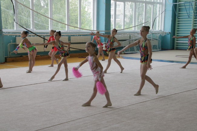 Отделение художественной гимнастики занимается в школе № 4 уже не первый год. Раньше девочки занимались на голом полу, потом им был передан ковер, который служил школе около 15 лет.