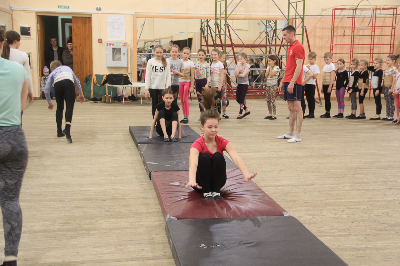 Цирковому коллективу «Ровесник» уже 38 лет. В студии занимается порядка 50 детей от 3 лет. Казалось бы, чему может научить педагогов, ребят, которые здесь занимаются, гимнаст? Однако руководитель студии Светлана Беклемышева отмечает, что такие совместные, интересные тренировки нужны ребятам больше для мотивации.