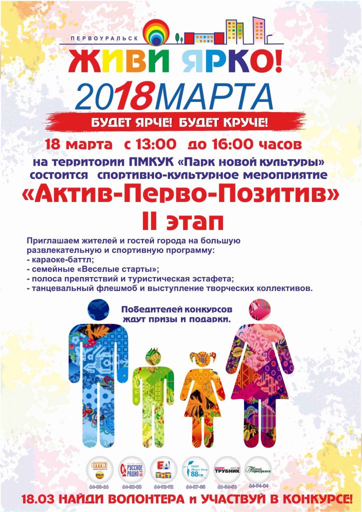 18 марта с 13:00 до 16:00 часов на территории ПМКУК Парк новой культуры состоится спортивно-культурное мероприятие Актив-Перво-Позитив – II этап