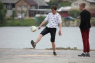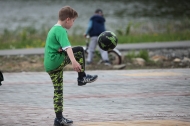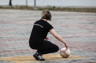 Главное в чеканке - отбить мяч максимальное число раз. Помогать себе можно было головой, плечами и даже спиной - но только не руками. Всего несколько десятков человек за час смогли нагнать мяч 19 688 раз.