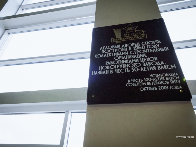 Перед собравшимися выступил заместитель председателя Первоуральской Городской Думы Эдуард Вольхин, подчеркнувший роль комсомольцев Новотрубного завода в строительстве Ледового Дворца, который распахнул свои двери в 1968 году и был назван имени 50-летия ВЛКСМ. Затем была торжественно открыта памятная доска, установленная в честь 100-летнего юбилея организации Советом ветеранов ОАО ПНТЗ.