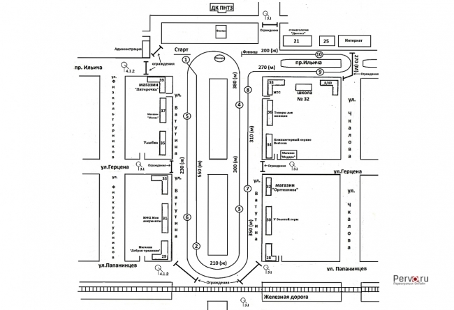 | 9 этап | мужской | 270 м | От угла дома № 8/49 по пр. Ильича поворот налево до угла дома № 25 по пр. Ильича |