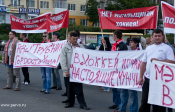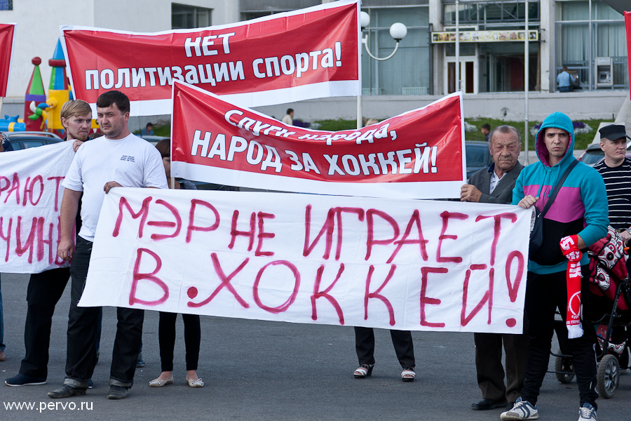 Одним из самых ярких лозунгов пикета, на наш взгляд, был следующий: «Хоккей – театр для Первоуральска». Действительно, для провинциального города лед в период игр становится чем-то вроде театральных подмосток, собирает на своих трибунах немалую часть жителей и демонстрирует зрелищное шоу.