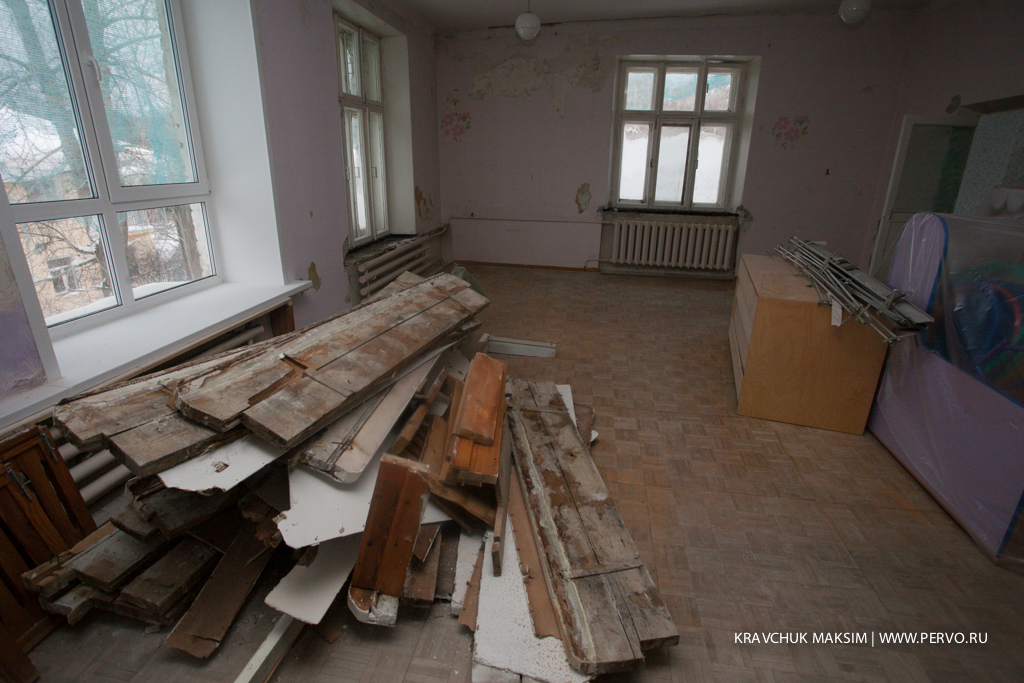 Работы в дошкольном образовательном учреждении начались осенью прошлого года. Необходимость закрыть дом для малышей на ремонт была вызвана тем, что здание пострадало из-за протекающей крыши. Это привело к тому, что из-за протечек стал рушиться фасад, внутри помещений, особенно на втором этаже, тоже появились следы локальных потопов. Они и сейчас еще заметны в комнатах детского сада. Как отметил Алексей Дронов, осматривая пятьдесят девятый и слушая пояснения, еще год-другой, и здание пришло бы в такое состояние, что ремонтировать «ветерана» не имело бы смысла. Да, детский сад № 59, который является филиалом МАДОУ № 12, действительно ветеран.