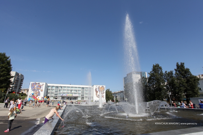 Главному фонтану Первоуральска около полувека. В 1967 году он забил на площади Победы перед только-только возведенным ДК ПНТЗ в год 50-летия Октябрьской революции. В статьях, посвященных его пуску, фонтан величественно именовался «дворцовым». Объем чаши 224 кубометра, вверх бьют 78 струй: 54 накладных и 24 вертикальных. Максимальная высота струй до пяти метров, сейчас максимальная высота достигнет 38(!) метров.