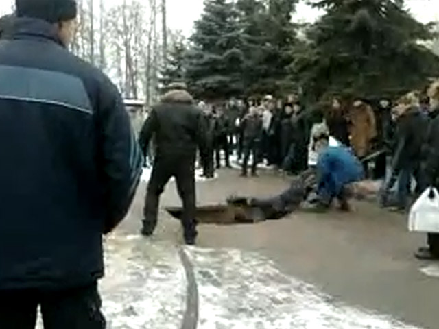 Как сообщает ИТАР-ТАСС, 26-летняя жена сотрудника полиции, гуляя с ребенком, находившимся в коляске, из-за неожиданного провала дорожного покрытия оказалась в яме. Женщина сумела ухватиться за край провала, что спасло ей жизнь. Ребенка вместе с коляской засосало в находящийся под землей канализационный коллектор. Муж пострадавшей, находившийся в этот день на службе, с помощью веревки спустился в провал и благополучно вытащил жену на твердую землю.