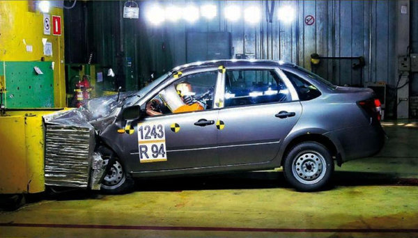 А какую оценку может заслужить Lada Granta в краш-тесте EuroNCAP? Если результаты будут, как у Калины, то, к сожалению, все печально. Эксперты газеты Авторевю разбили Калину по европейской методике, и автомобиль получил лишь одну «звезду». Вероятность травмы головного мозга водителя (так называемый критерий HIC) в полтора раза превысила опасный порог. Зафиксированная сила, ломающая позвоночник, оказалась на грани «красной зоны» (худший из возможных показатель).