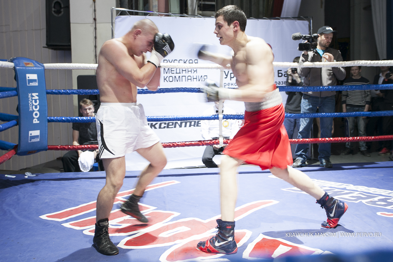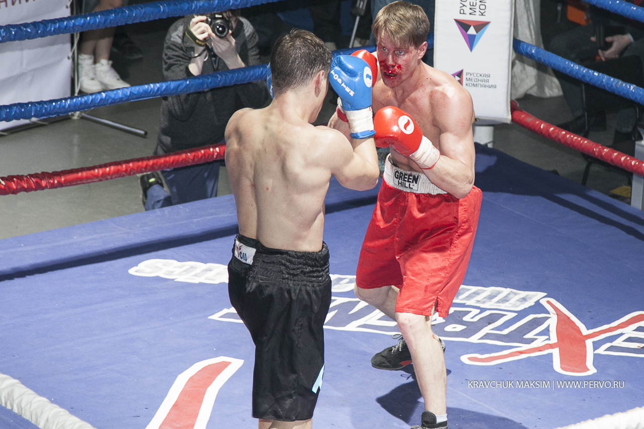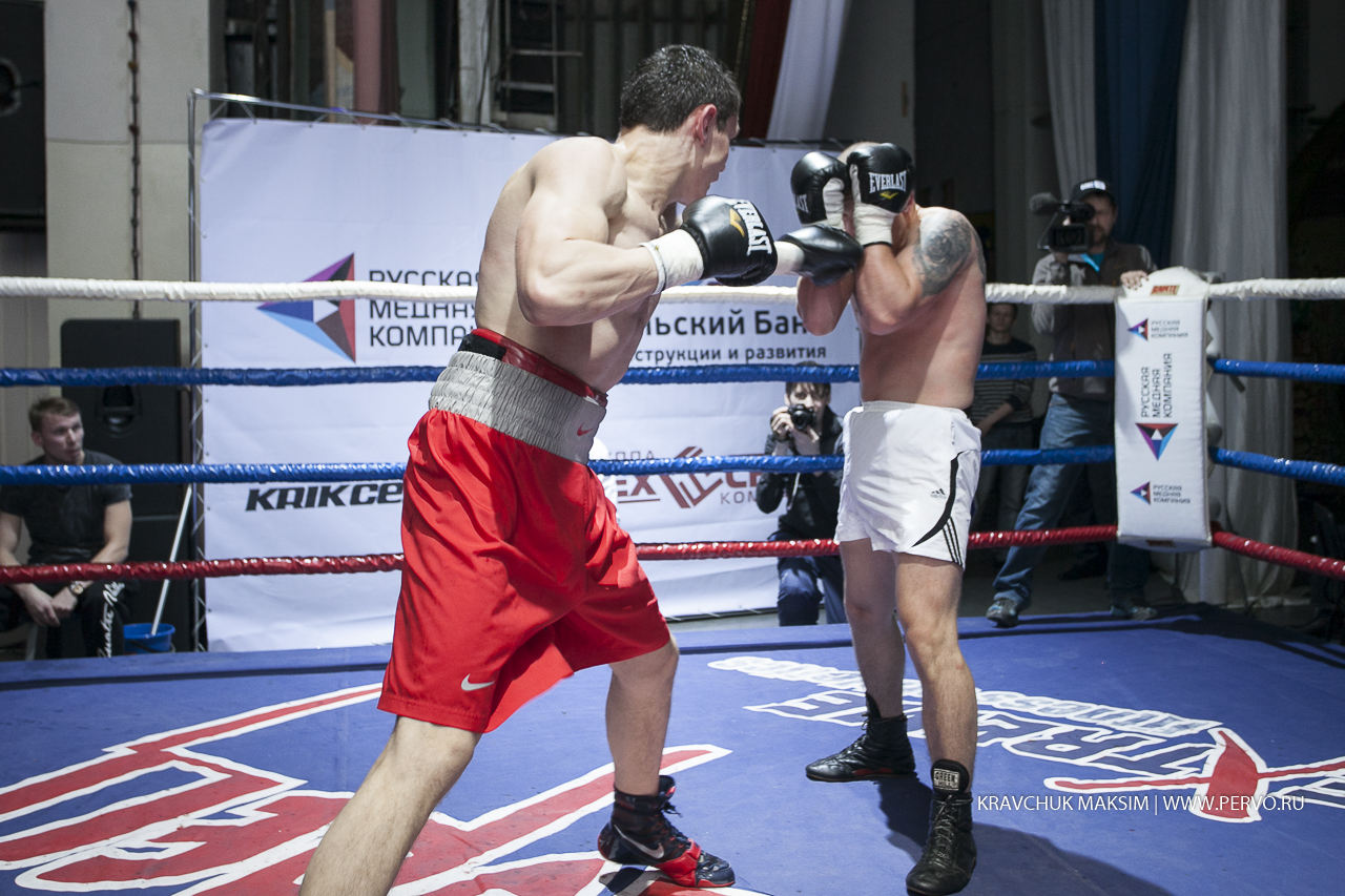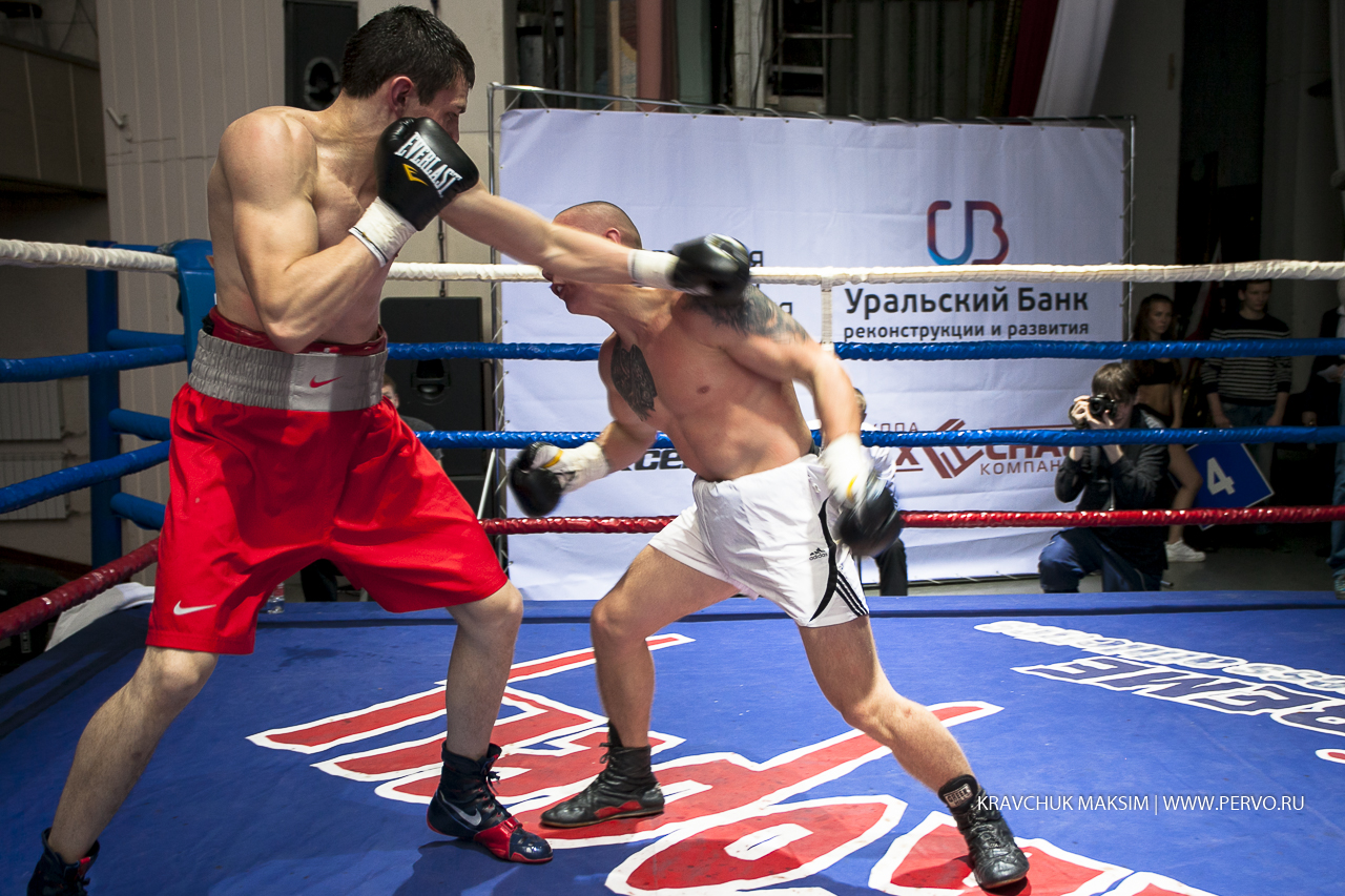 За звание чемпиона Урала и Сибири в первом бою состязались спортсмены из Екатеринбурга Михаил «Great Warrior» Алексеев и Мусаиб «Супер» Асадов из Нягани. Весовая категория до 59 килограммов, восемь раундов и воля к победе. Оба бойца занимают верхние строчки в рейтинге в Федерации профессионального бокса России. Но пояс, забирает Михаил Алексеев. Свои перчатки победитель, как обещал, дарит Первоуральскому юному боксеру и поклоннику Михаила, а всему залу слова благодарности.