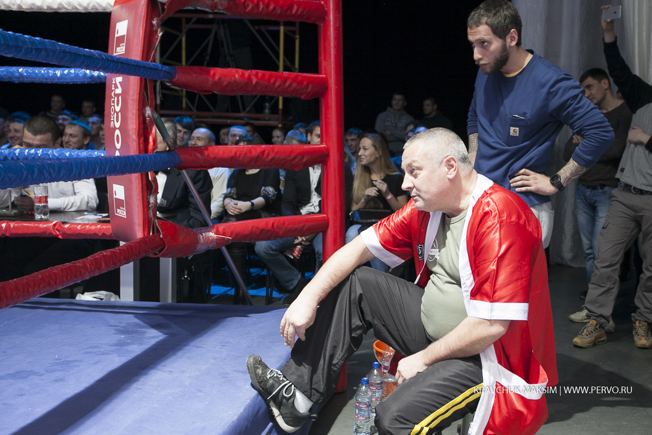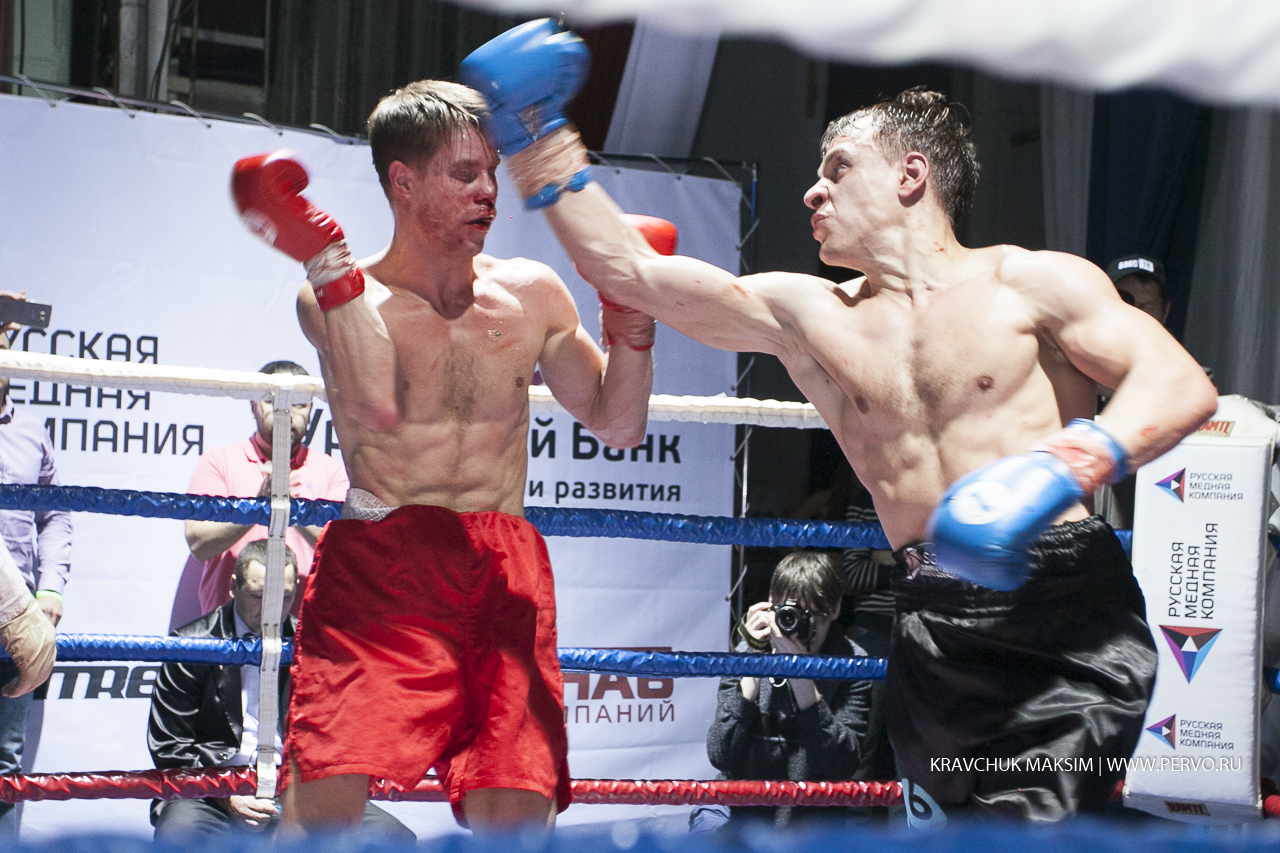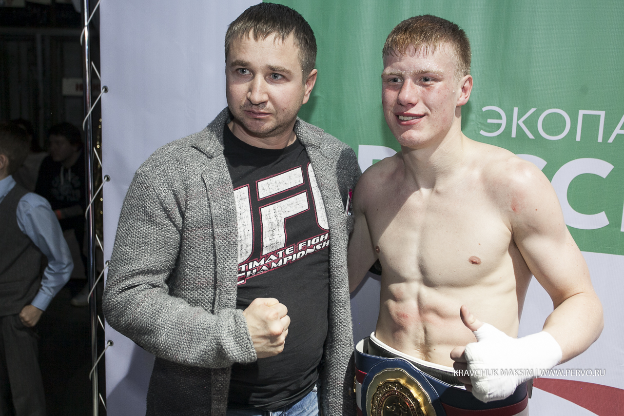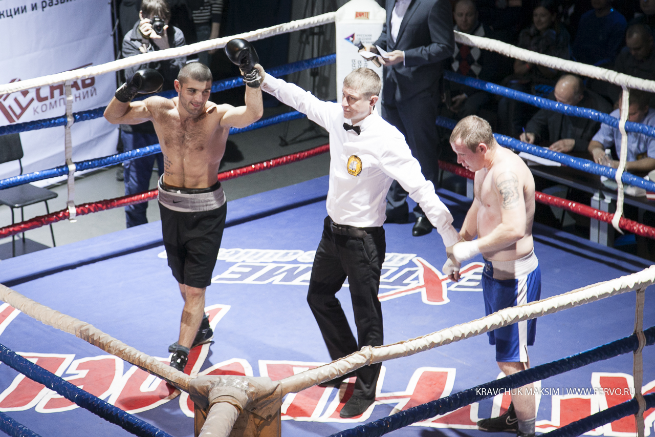 За звание чемпиона Урала и Сибири в первом бою состязались спортсмены из Екатеринбурга Михаил «Great Warrior» Алексеев и Мусаиб «Супер» Асадов из Нягани. Весовая категория до 59 килограммов, восемь раундов и воля к победе. Оба бойца занимают верхние строчки в рейтинге в Федерации профессионального бокса России. Но пояс, забирает Михаил Алексеев. Свои перчатки победитель, как обещал, дарит Первоуральскому юному боксеру и поклоннику Михаила, а всему залу слова благодарности.