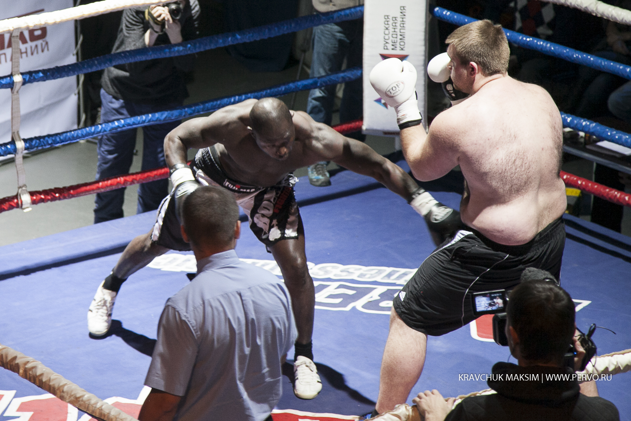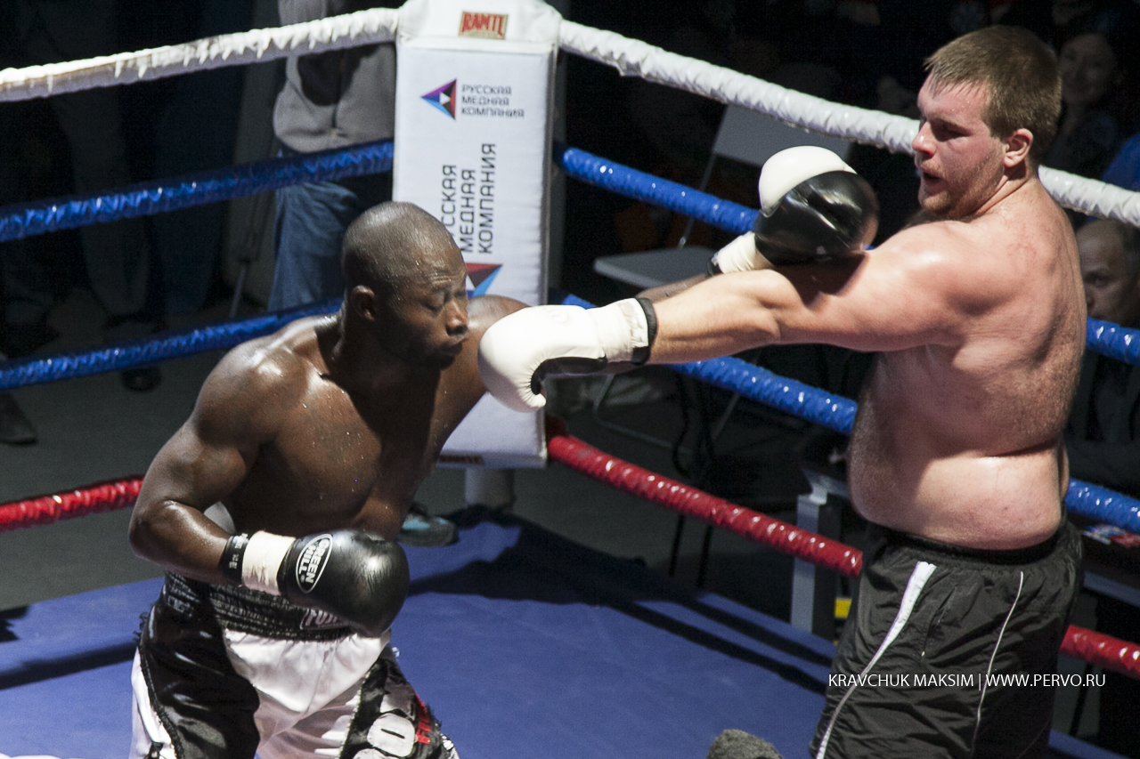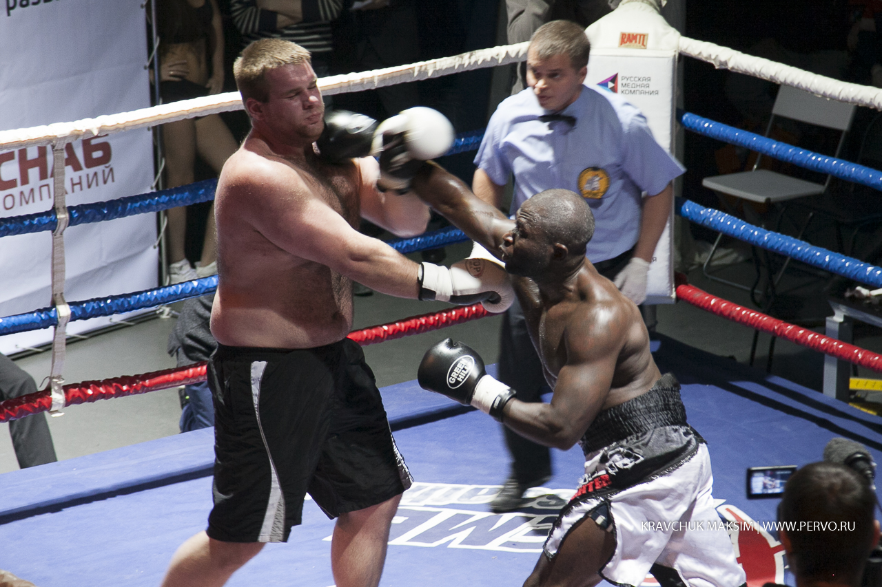 видео Евразия Первоуралец Сергей Кронебергер боролся с противником из Камеруна - Стивом Тагнангом. У обоих - профессиональный дебют. Колоритность бойцов видна не вооруженным взглядом. Абсолютно разный вес и рост, но категория одна - свыше девяноста килограммов. За первоуральца болеет весь зал, но гость из Камеруна досрочно - в третьем раунде одерживает победу - техническим нокаутом.