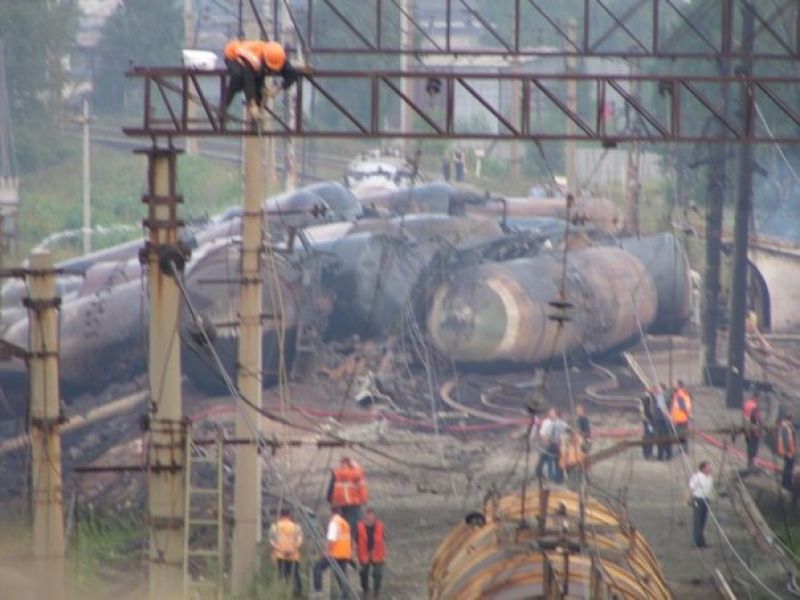 Напомним, 3 августа 2003года, около 15 час. 31 мин. на станции Ново-Талица, под Первоуральском, сошли с рельс 16 цистерн с конденсатом бензина АИ-66. В результате взорвалось 3 цистерны. По счастливой случайности обошлось без жертв.