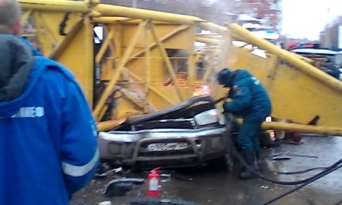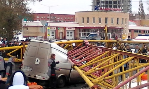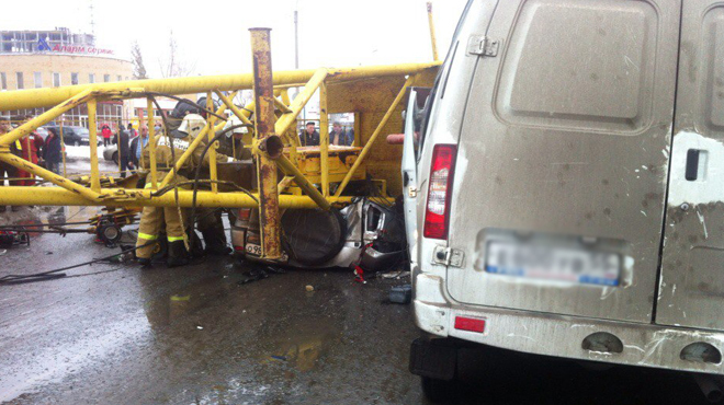 В Омске строительный кран рухнул на проезжающие автомобили